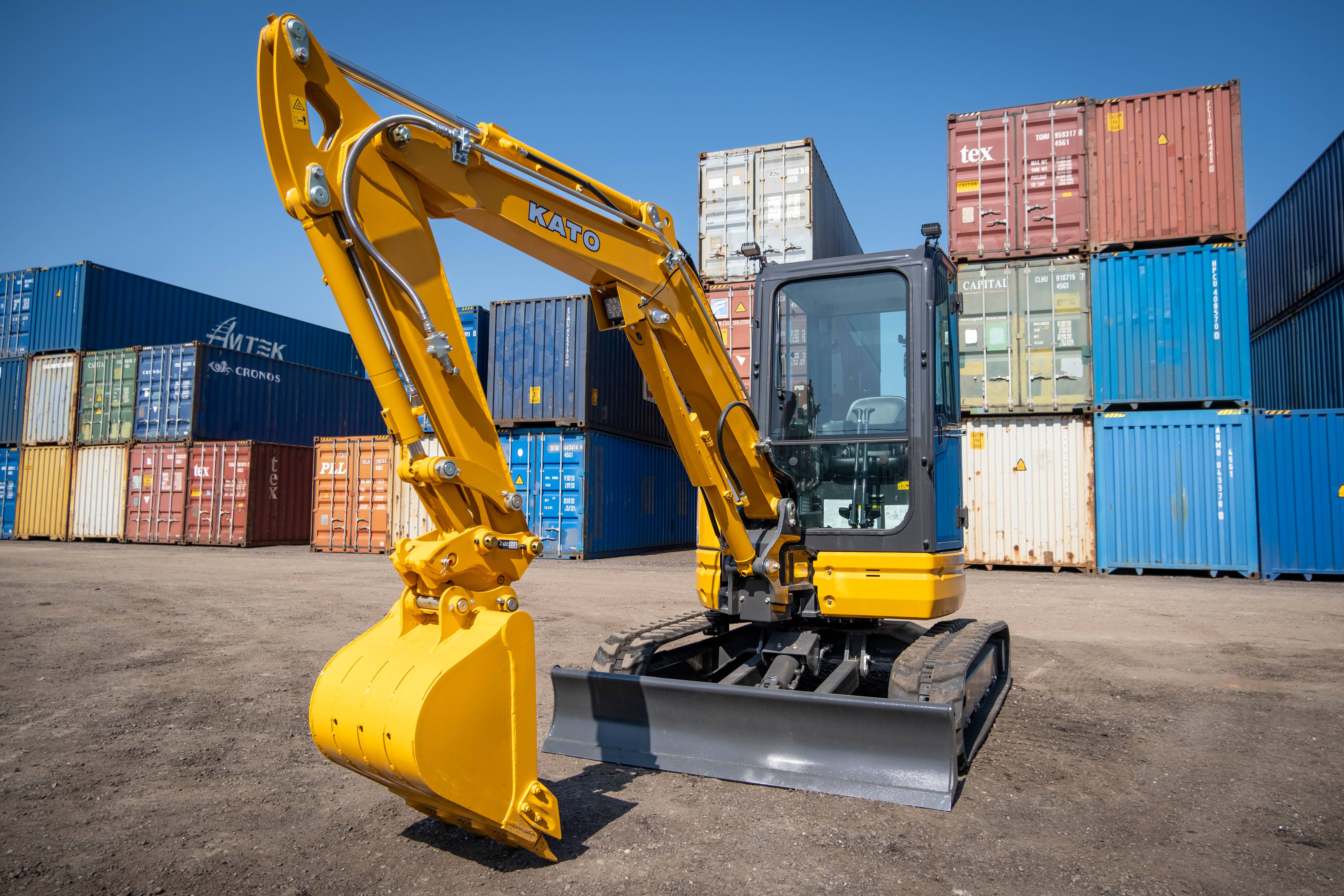 В новой серии экскаваторов KATO инженеры смогли добиться более низкого центра тяжести и большей устойчивости. Примерно на 5% выше, чем раньше. Это повышает эффективность работы и позволяет выполнять операции с более высоким уровнем сложности. Два режима работы: экономичный – снижает потребление топлива и скоростной – для выполнения высокоинтенсивных операций. Увеличилась и высота погрузки, при этом сократился и радиус поворота, соответственно диапазон работ стал шире. Уникальная технология KATO с тремя насосами повышает усилие копания на 10%, двигатель и гидравлическая система идеально сбалансированы, все это в совокупности обеспечивает необычайно плавное и точное выполнение рабочих операций. Гидравлическая раздвижная рама 1550 мм – 1800 мм обеспечивает устойчивость и непревзойденную мобильность. Нулевой вынос капота и боковой поворот стрелы позволяют с легкостью справляться с работами в сложных стесненных условиях. Например, в помещениях, туннелях и при прокладке коммуникаций в городской застройке. Автоматическая функция холостого хода экономит до 10% топлива. KATO HD37V5 оснащен двигателем нового поколения, самым экологичным в классе. Переключение между 1 и 2 скоростями осуществляется электрический кнопкой. Ковш и бульдозерный отвал расположены ближе друг к другу, что облегчает копание песчаного грунта.